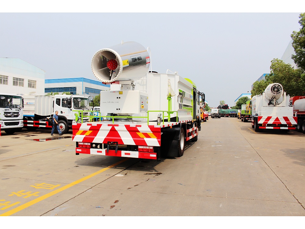 上裝配置:罐體容積16立方,罐體為方形罐,罐體內部做玻璃鱗片防腐,罐體鋼板采用Q235碳鋼鋼材,整車具備灑水車的一切功能(前沖、后灑、側噴、平臺高炮),氣缸(駕駛室內**前沖、后灑),水位報**器(罐體缺水時會報**或自動停止工作),標配億豐60/90水泵,自流閥及消防接頭各1個、水管2根。后平臺安裝100米不銹鋼霧炮。