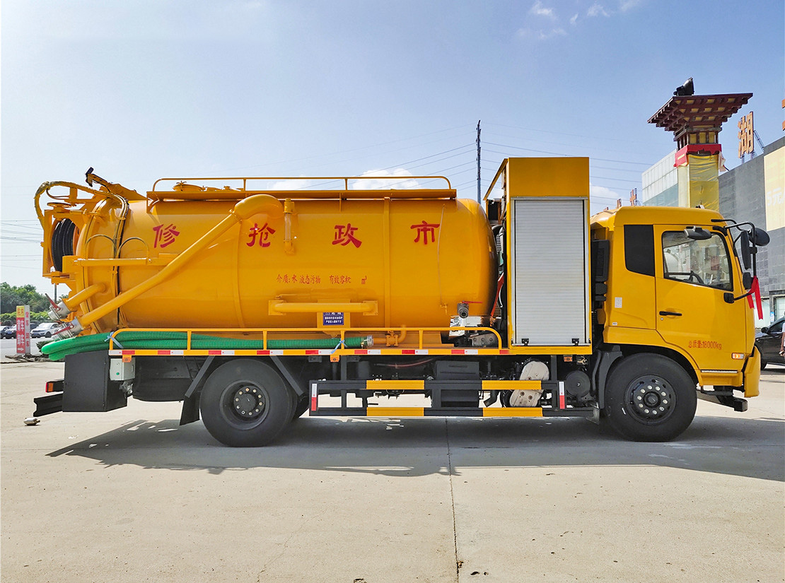 清洗部分:5方水箱,采用8mmQ235優(yōu)質碳鋼板,水箱兩側消防接口進水,工具箱一個。采用天津通潔250L流量高壓泵,配100米內徑19#高壓管,10個大小不同噴頭一套, 后置式清洗卷盤,帶淋管裝置(用于淋洗高壓管疏通管道過后上面殘留的污物),帶氣吹水功能(用于吹出每次高壓管工作完以后內部殘留的水漬,防止天冷結冰影響下次使用)