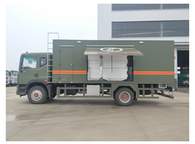 國內**款救災水凈化多功能車: 該車輛可保證水凈化車設備迅速到達災區現場,通過對災區附近的污濁水源進行快速凈化,為災民提供源源不斷的飲用水,并根據災區需求,配置了發電、照明,加熱、飲用水分裝外運,是一個小型的抗災救護、指揮協調**。